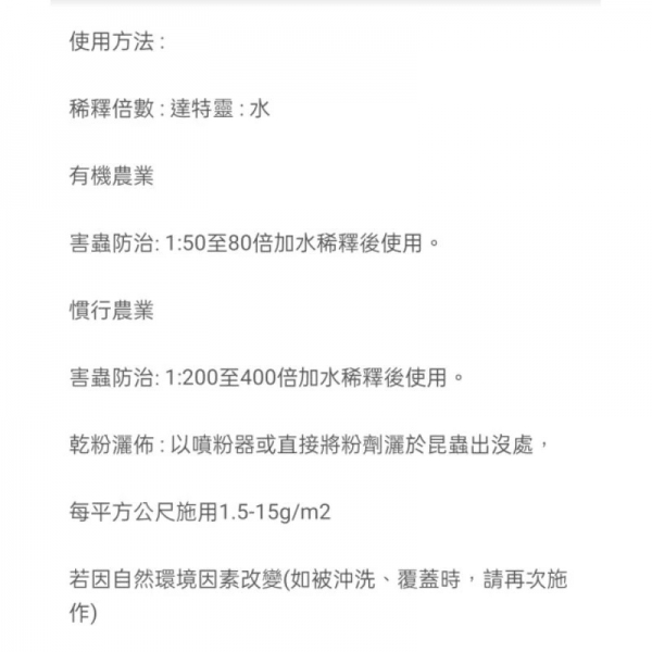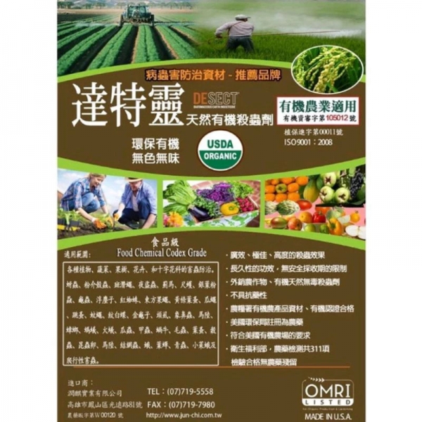 達特靈天然有機殺蟲劑適用範圍: